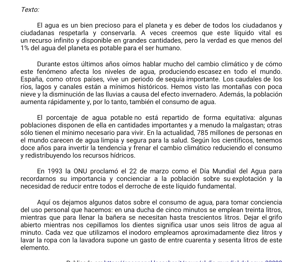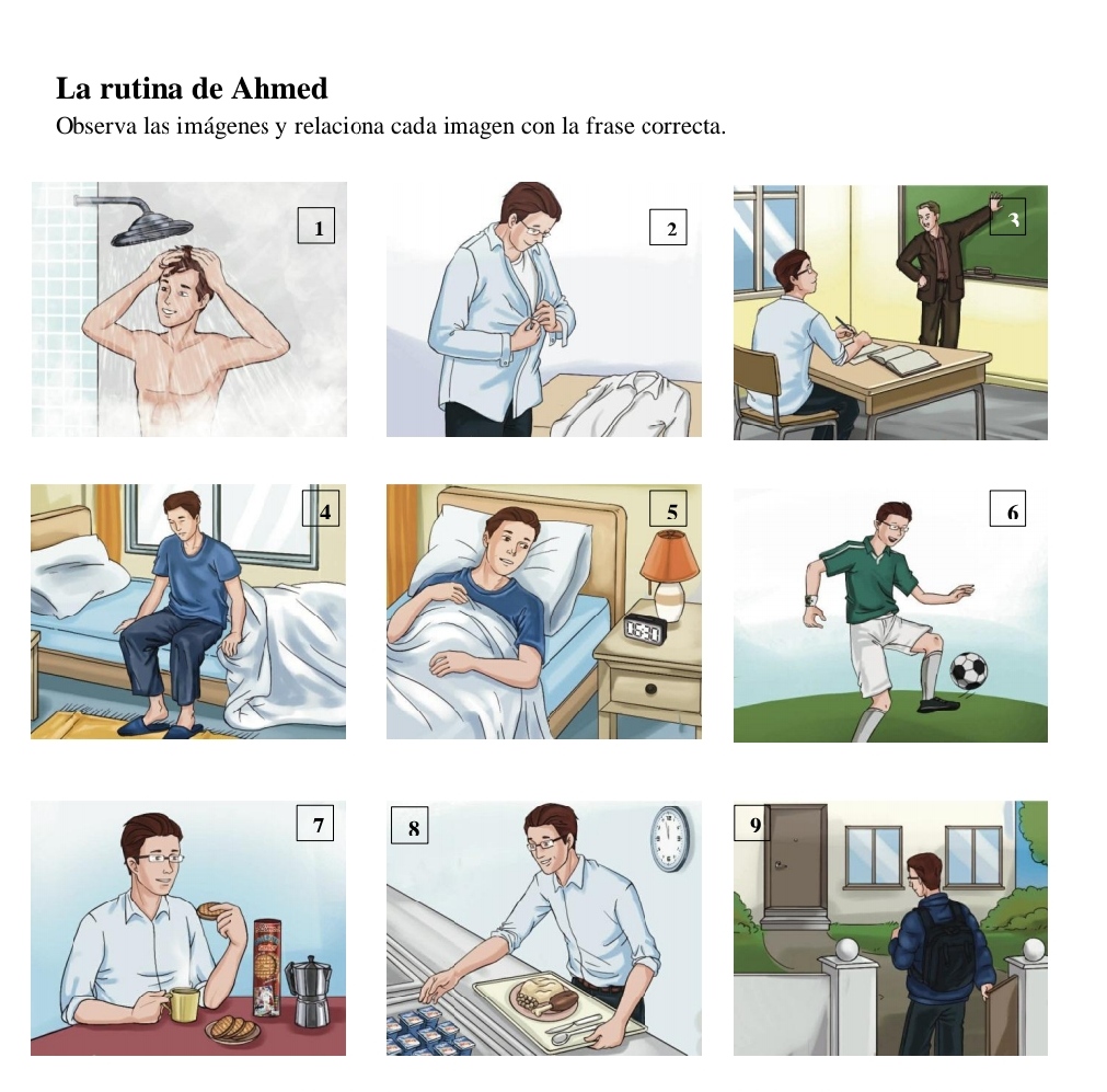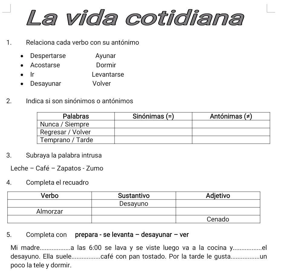 Ejercicio sobre las diferentes actividades de la vida diaria.