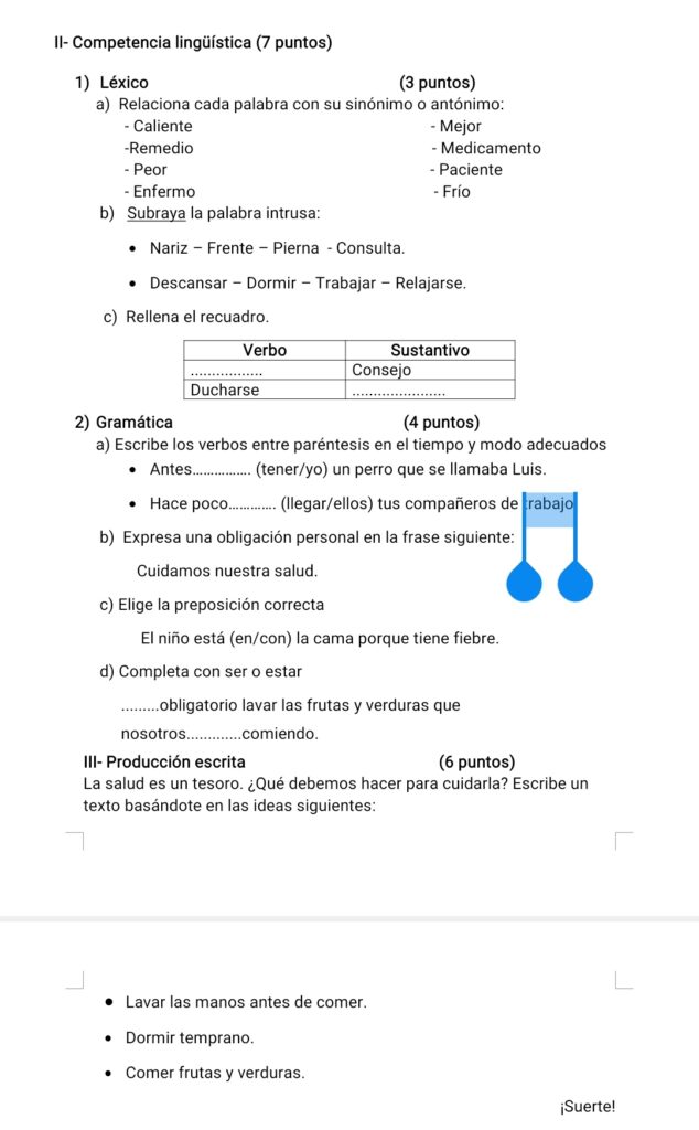 Ejercicios de gramática.