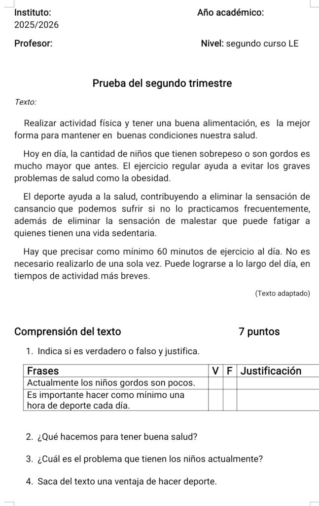 Prueba del segundo trimestre.