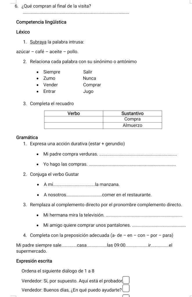 Ejercicios de léxico.