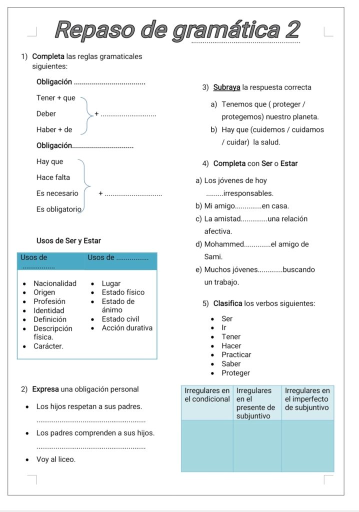 Ejercicios de gramática.