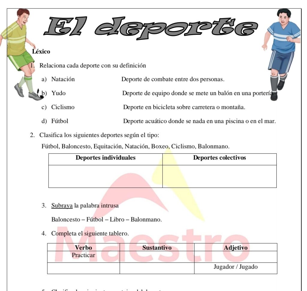 Ejercicios de léxico sobre el tema del deporte.