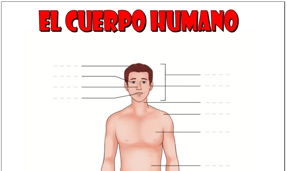 Actividad para identificar y aprender el vocabulario básico de las partes del cuerpo humano a través de la observación de un dibujo. El alumno escribe el nombre adecuado de cada parte del cuerpo.