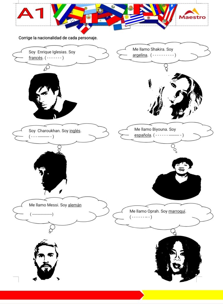 Ejercicio de léxico sobre las nacionalidades.
