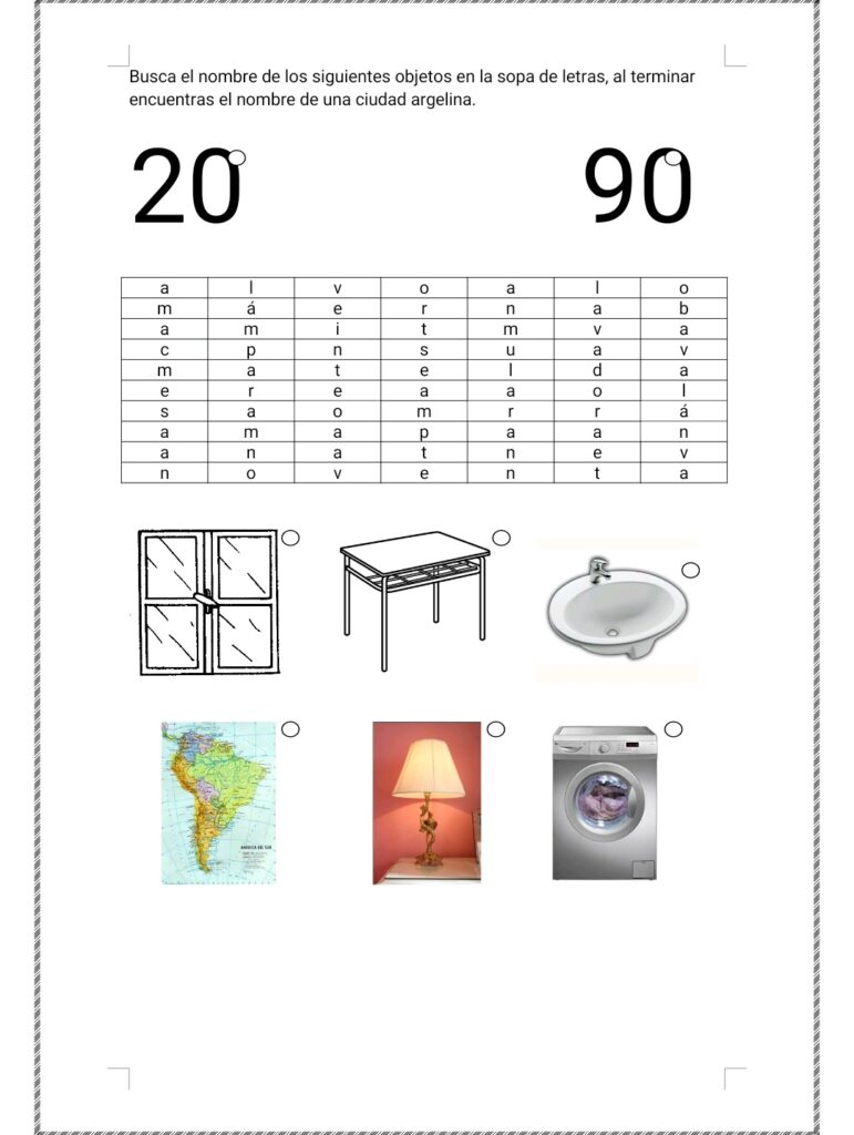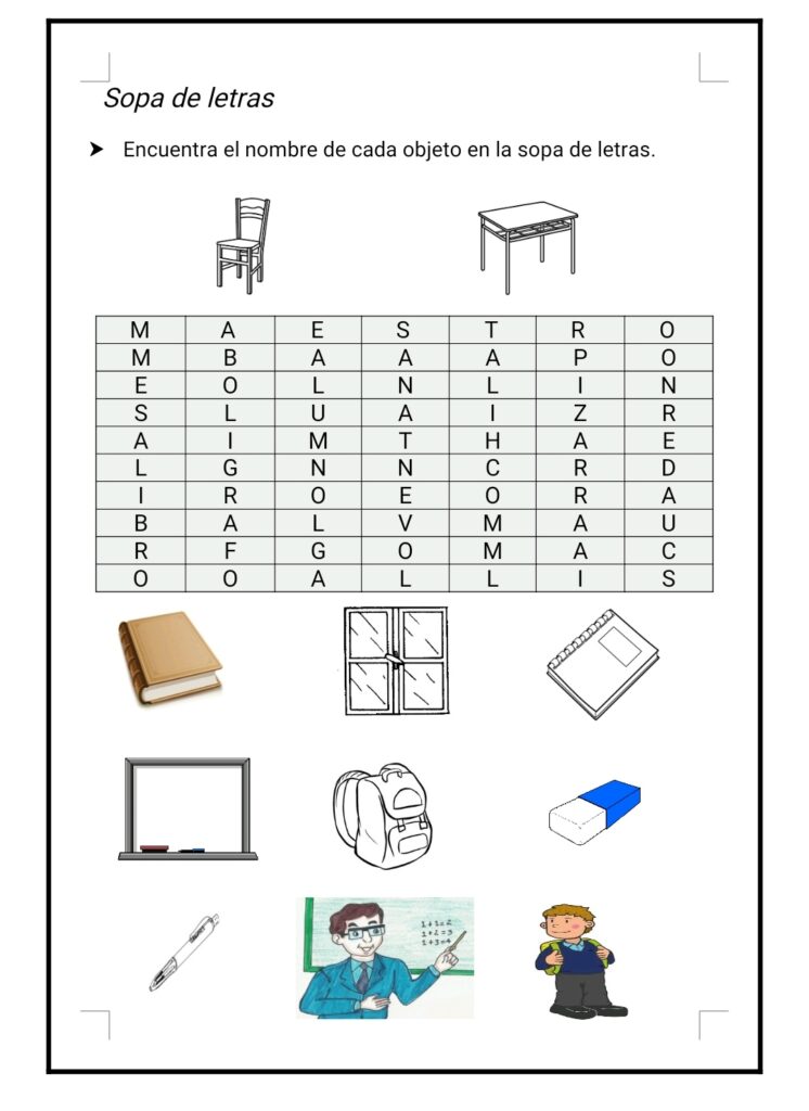 Sopa de letras sobre los objetos de la clase.