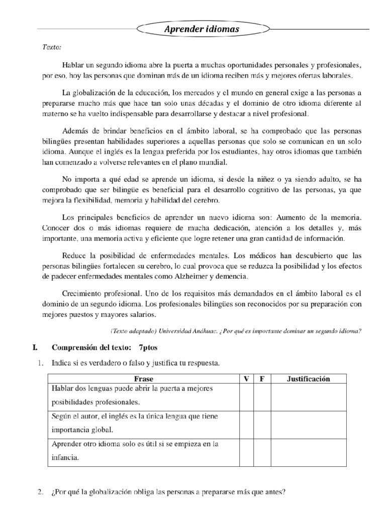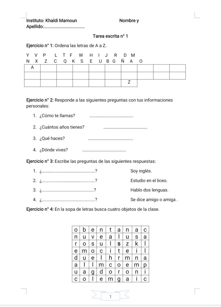 Tarea escrita de primer trimestre para los alumnos de segundo curso.