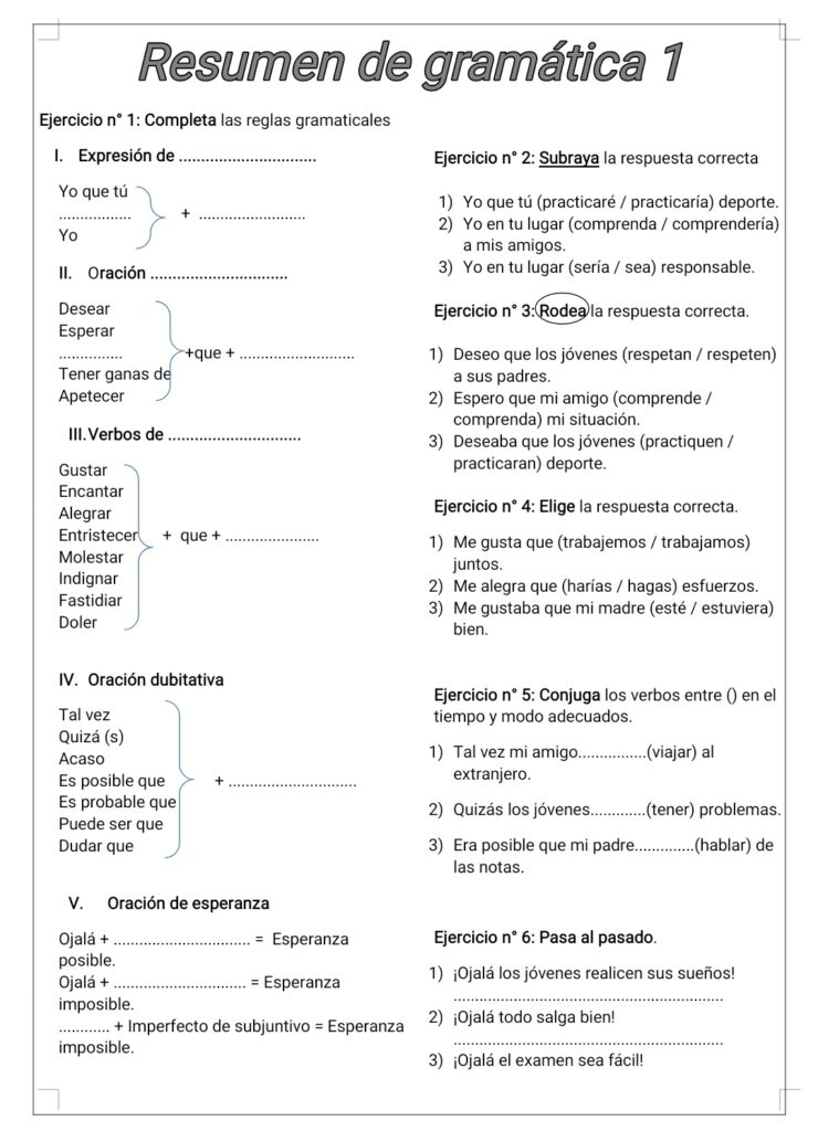 Ejercicios de gramática.