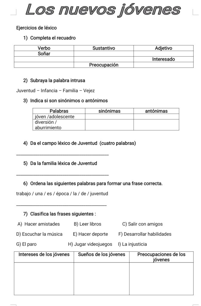 Ejercicios de léxico adaptados a la nueva tipología de preguntas.